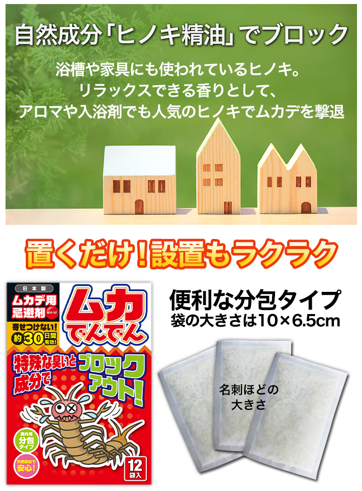 ヒノキのパワーでムカデを殺さず寄せ付けない!