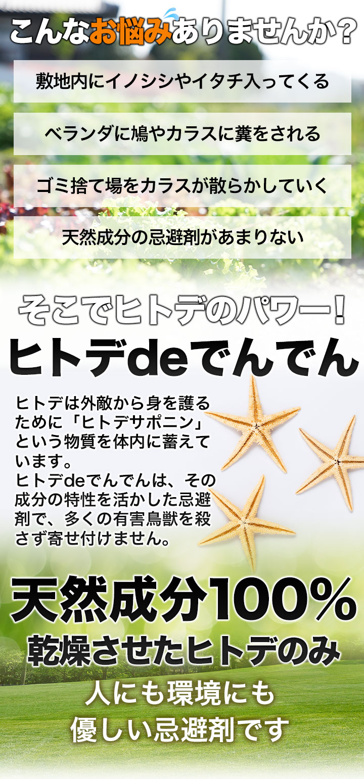ヒトデのパワーで害虫・害獣を寄せ付けない天然忌避剤!