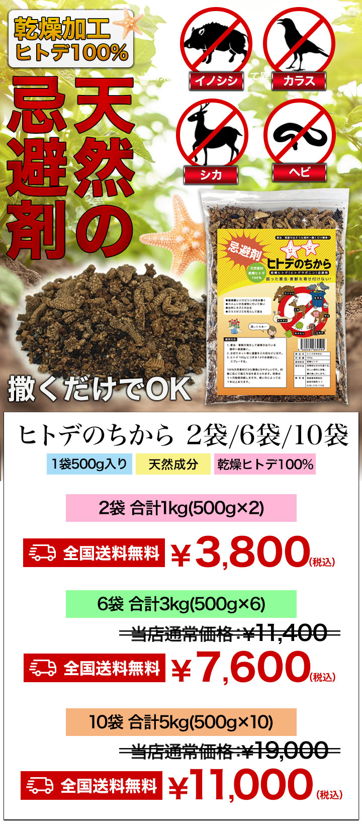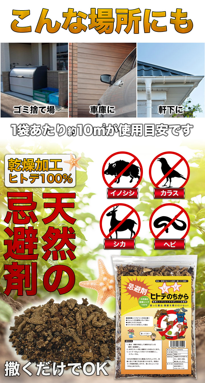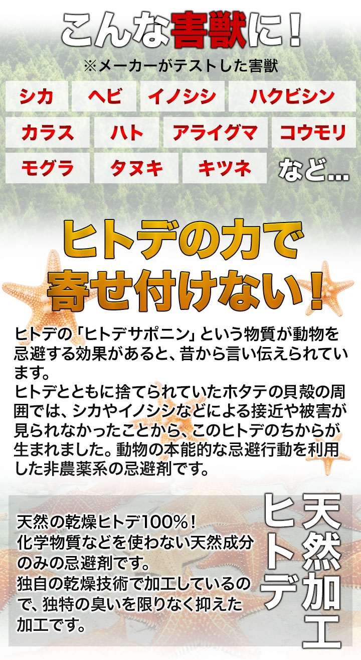 ヒトデの力で害虫・害獣をブロック!天然成分の忌避剤!