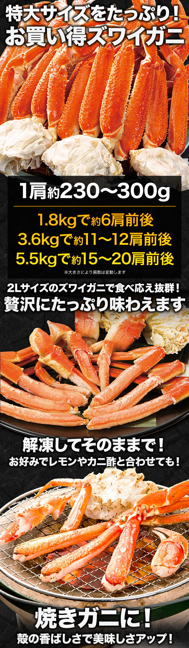 ※商品のラベルにはカニ正味の重量を記載しています。