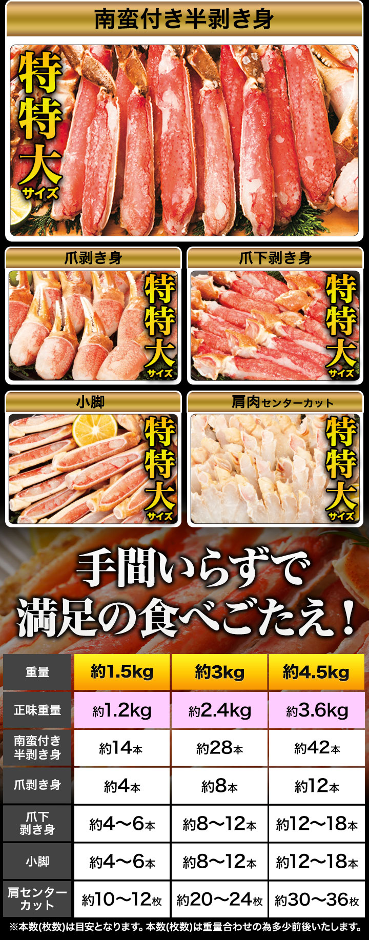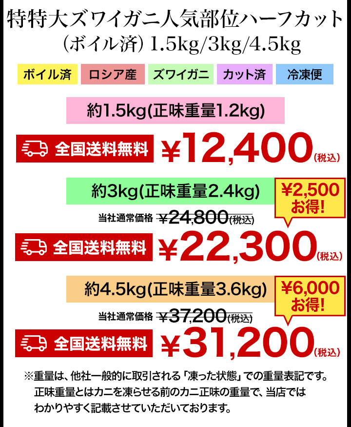 ※商品のラベルにはカニ正味の重量を記載しています。