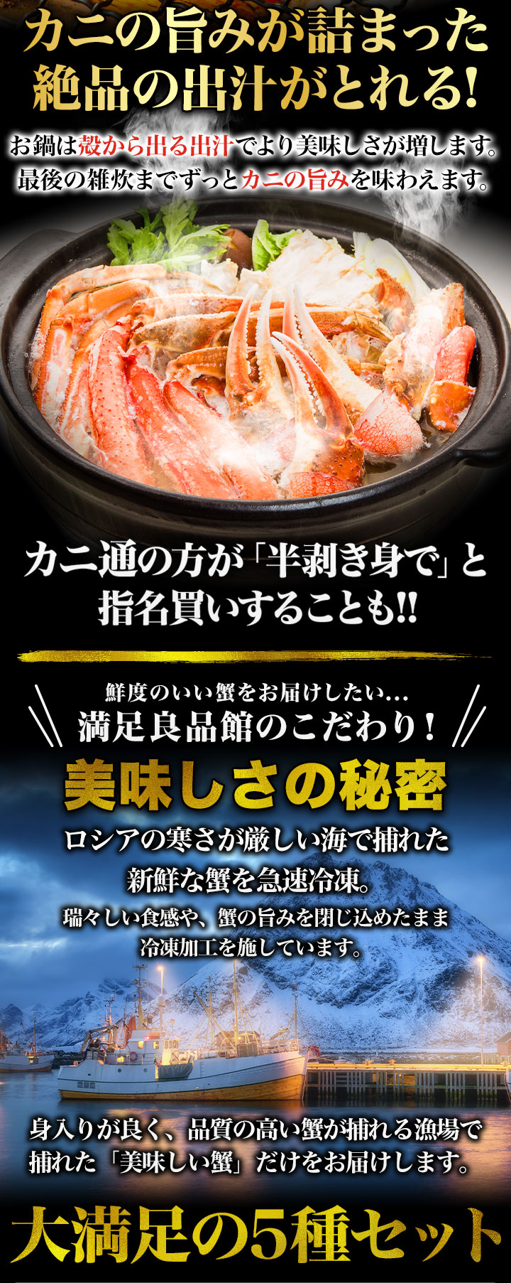 ズワイガニ人気部位ハーフカット(ボイル済)