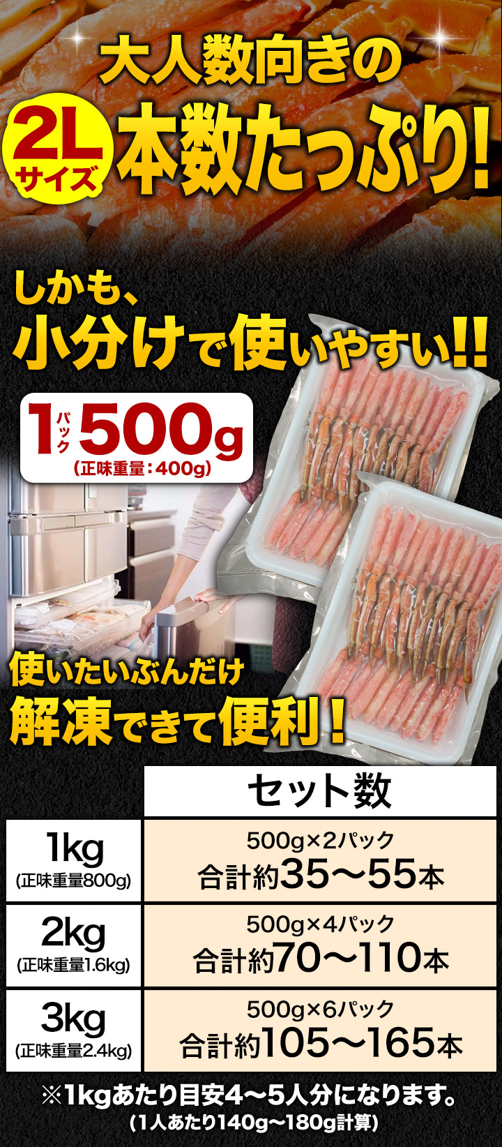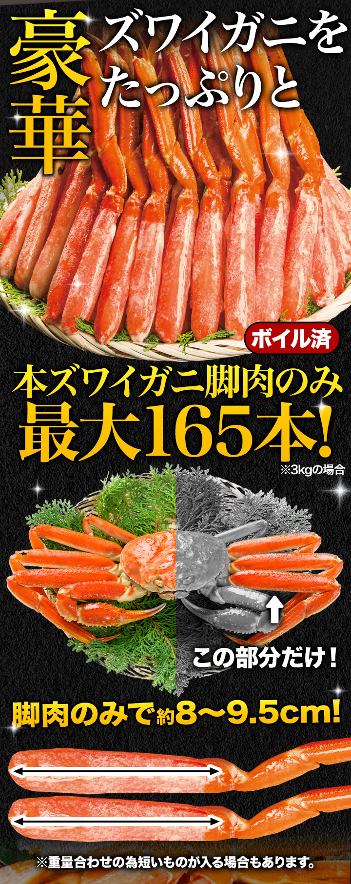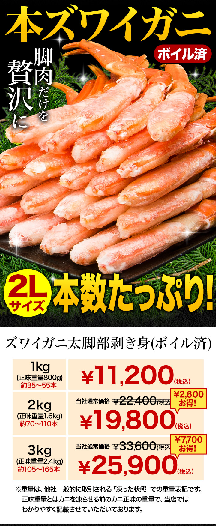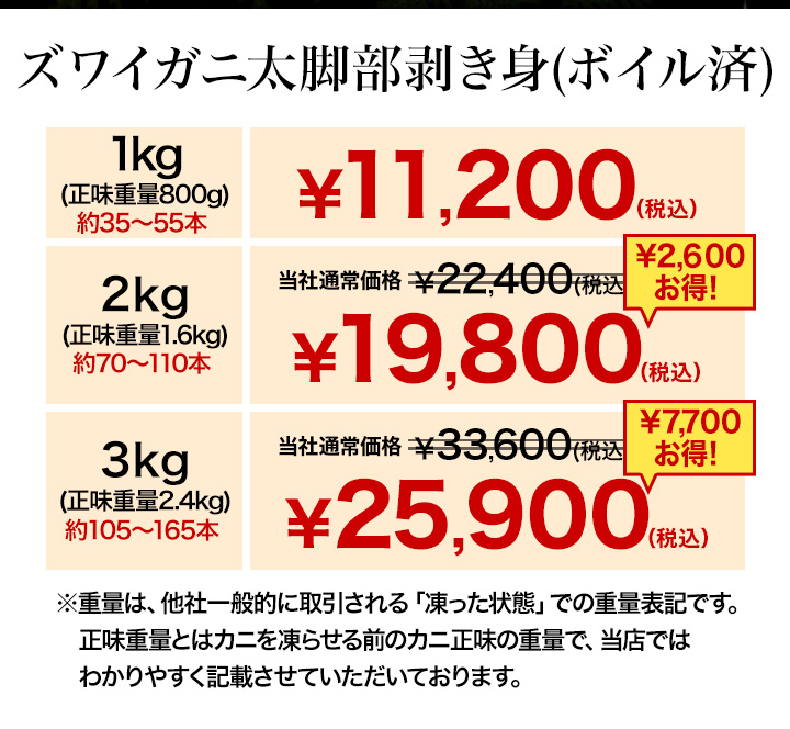 ※商品のラベルにはカニ正味の重量を記載しています。