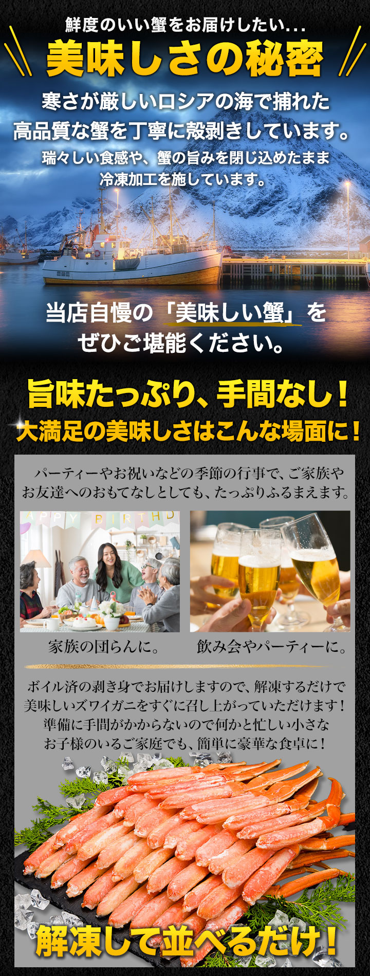 蟹の殻を剥いてあるお得感満載の極上海鮮グルメ