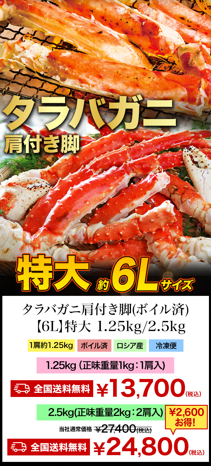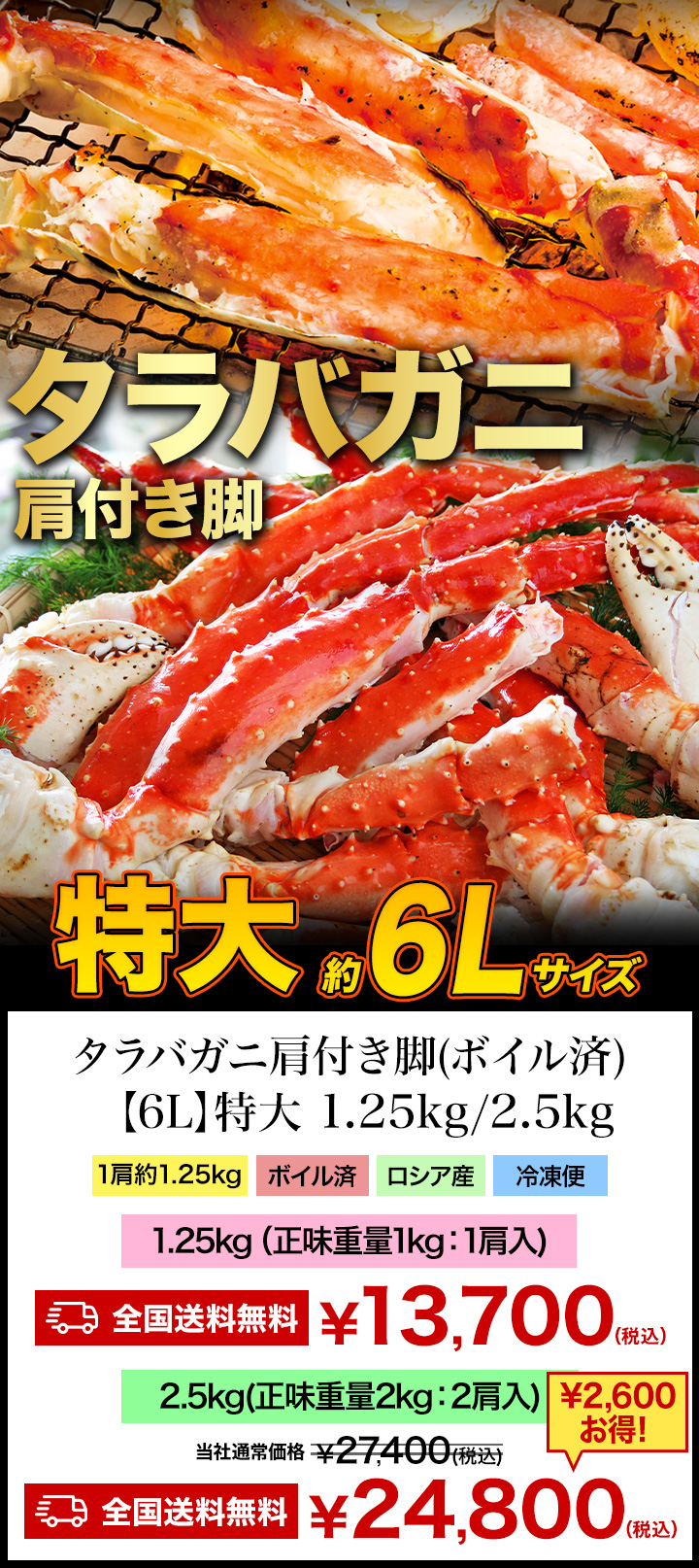 全国送料無料!ボイルタラバガニの肩付き脚!