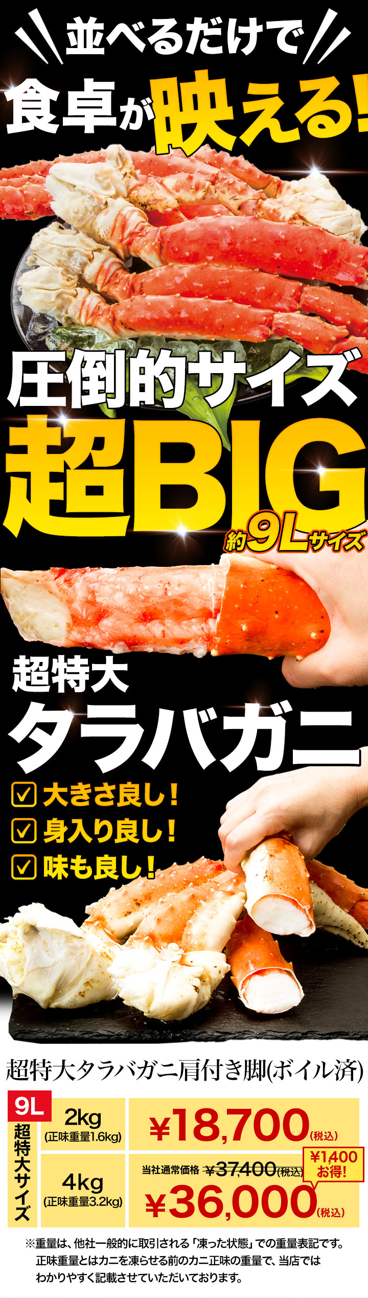 全国送料無料!ボイルタラバガニの肩付き脚!