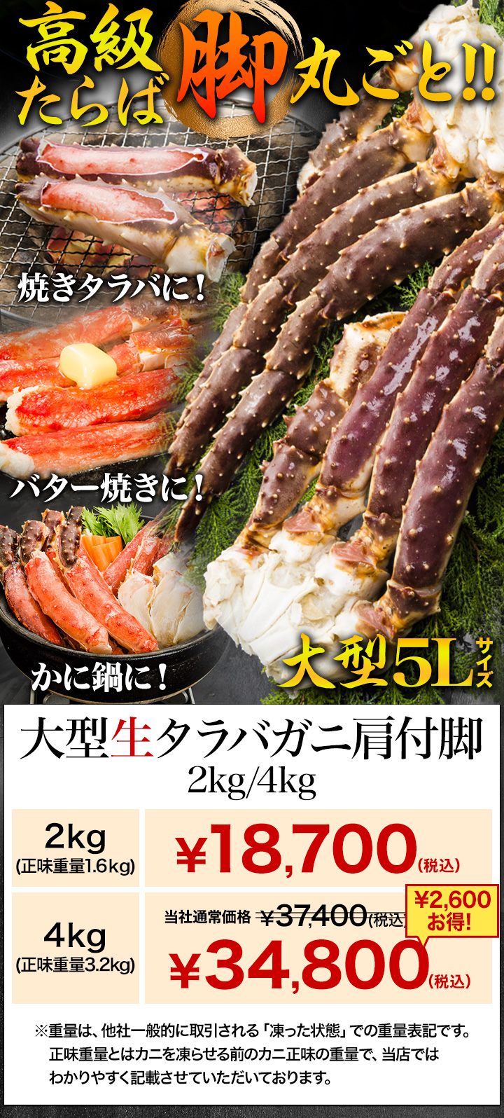 超特大!カニ鍋に!焼きガニにピッタリの大型生タラバガニ!