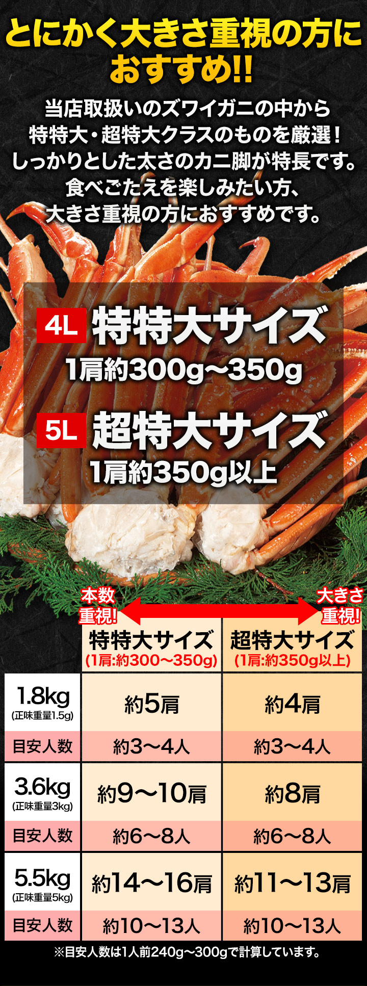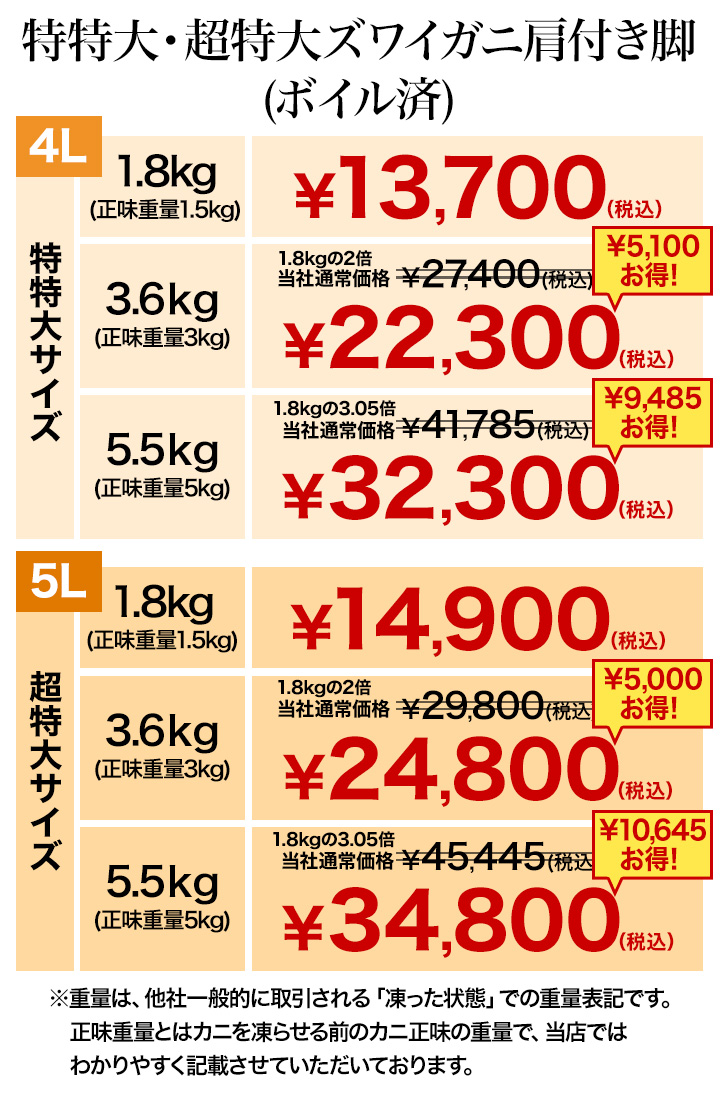 ※( )内の正味とは、グレーズを除いたカニのみの重量です。