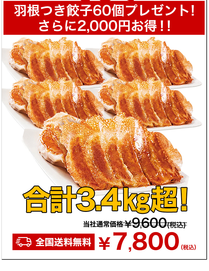 2セット+羽根つき餃子 3.4kg超