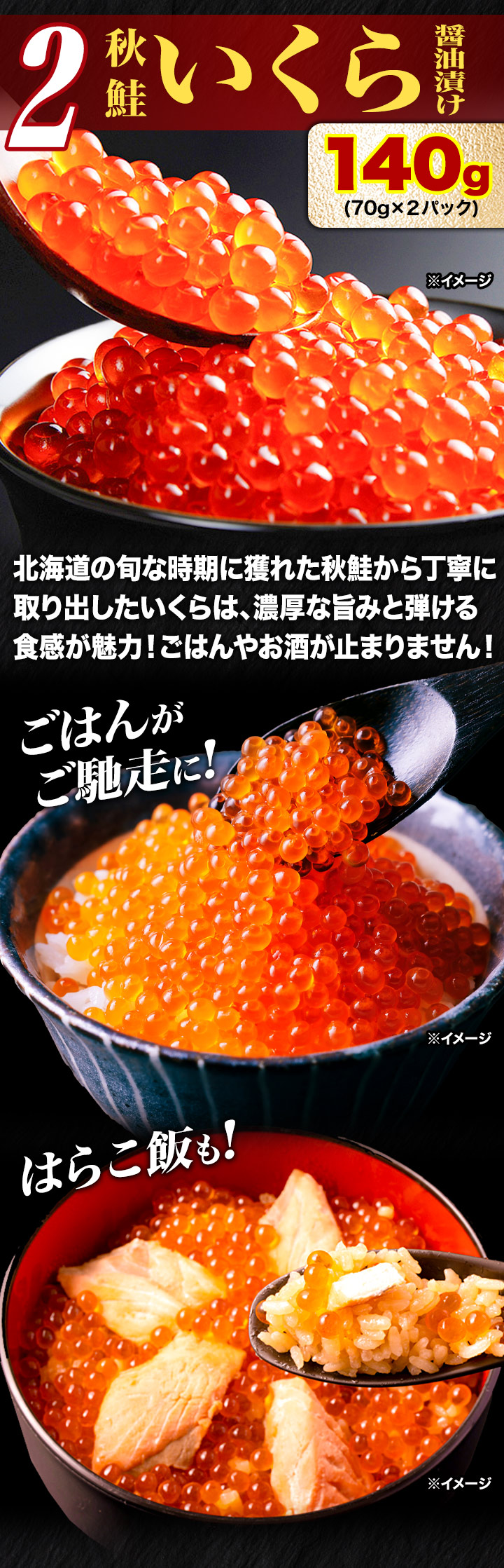 【秋鮭いくら醤油漬け】鮭卵(北海道産)、しょうゆ、清酒、みりん (一部に小麦・いくら・大豆を含む)