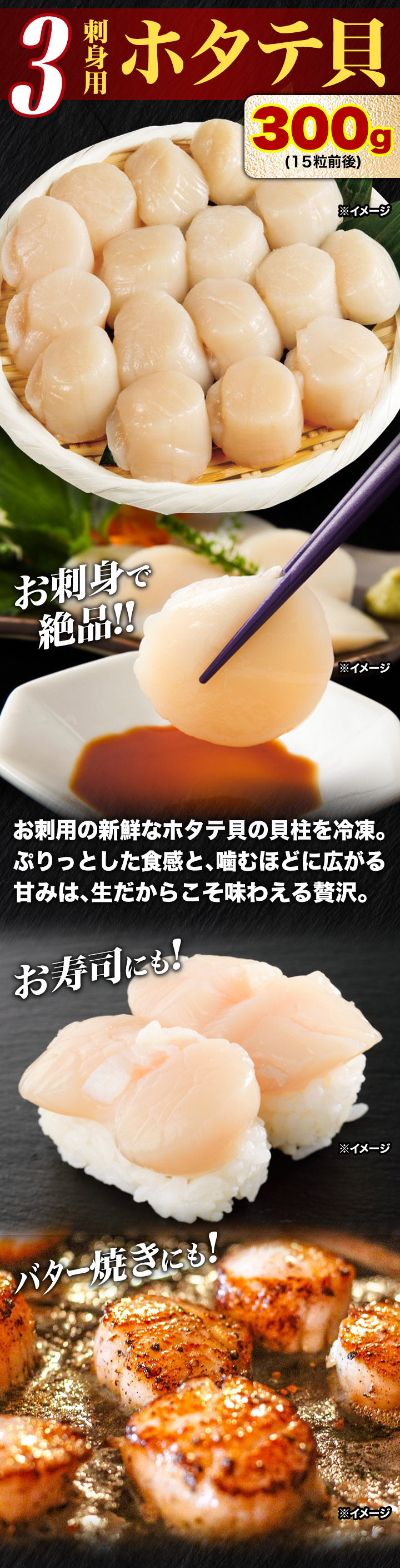 - たらばがに、帆立貝柱は解凍後、そのまま(お刺身として)お召し上がりいただけます。